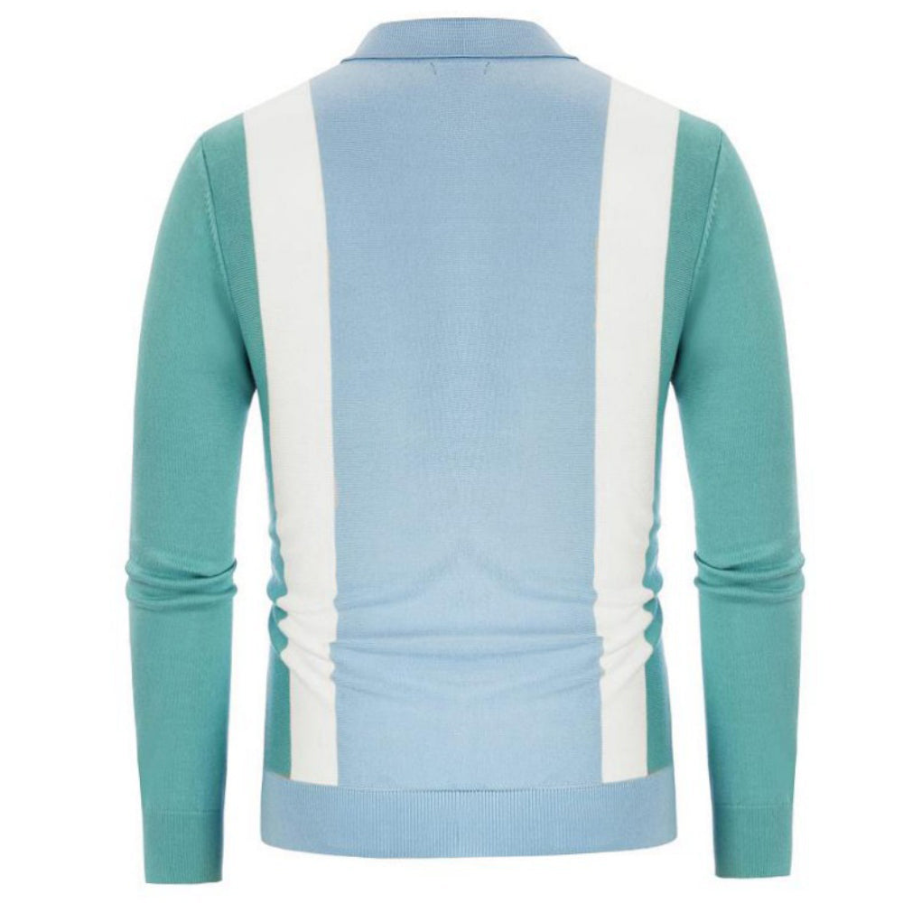 New Men Striped Casual Breathable Long Sleeve Polo Shirt