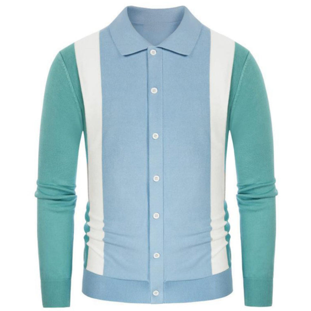 Men's Colorblock Cotton Long Sleeve Cardigan