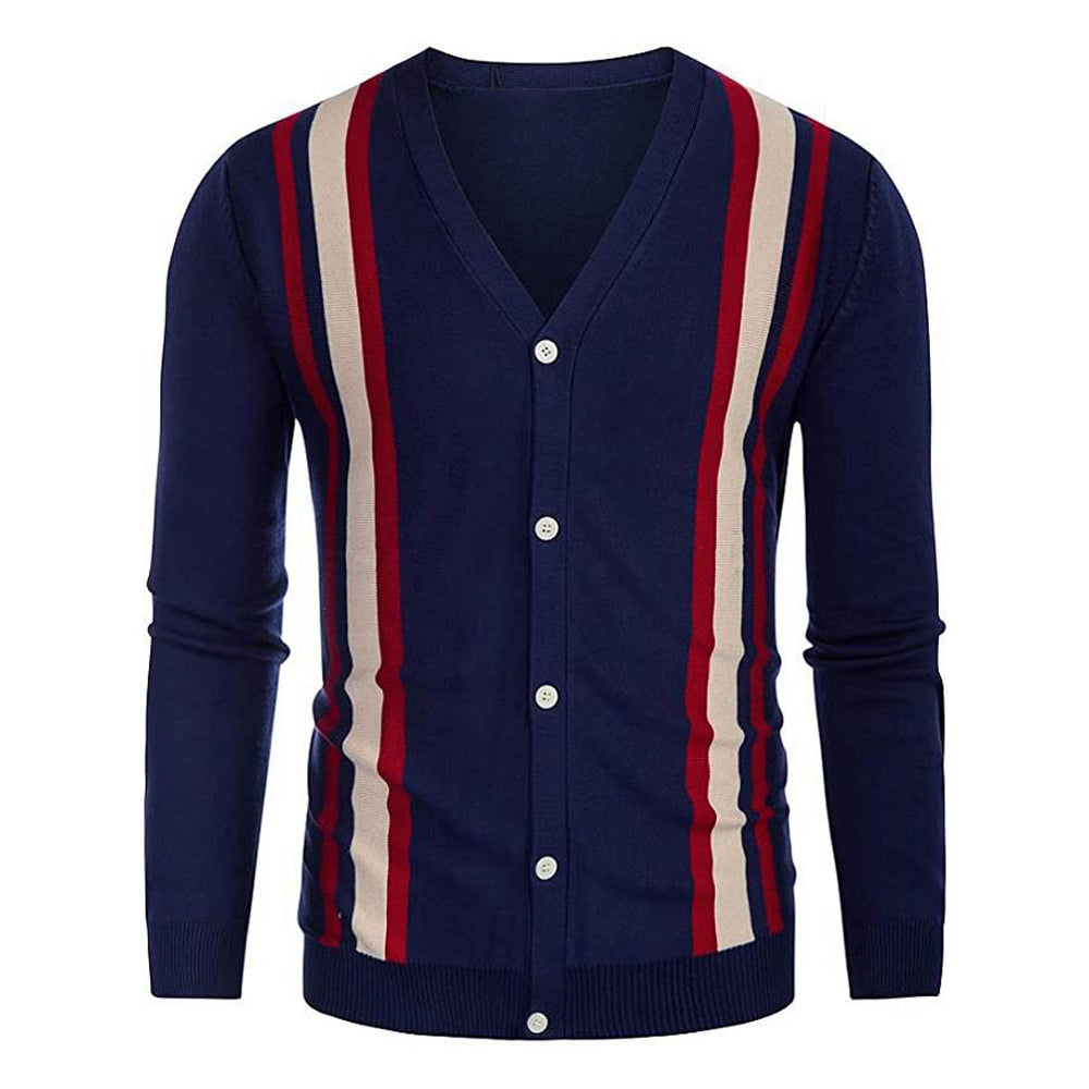 Men's Long Sleeve V-Neck Striped Cardigan