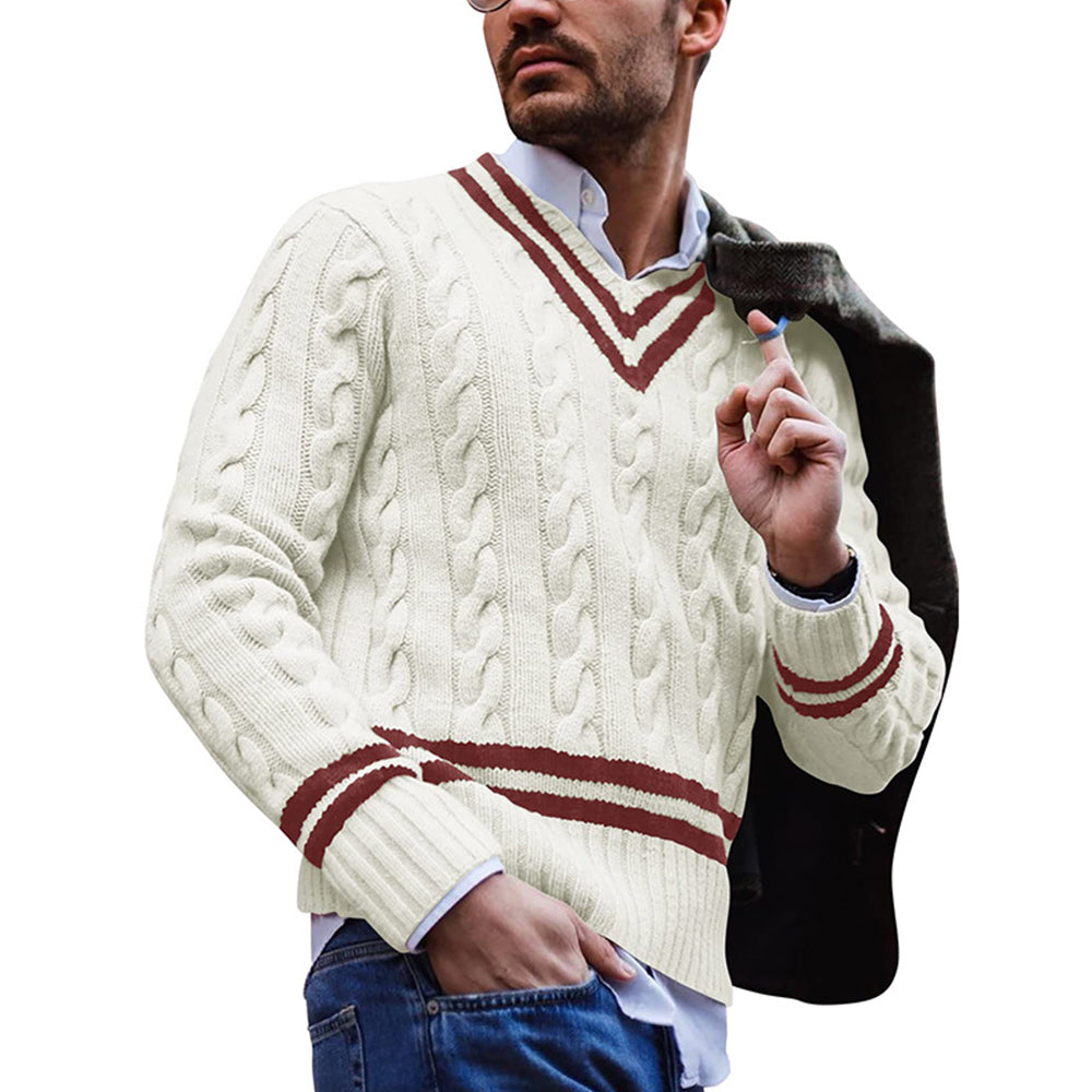 Autumn/Winter Men's V-Neck Striped Colorblock Sweater