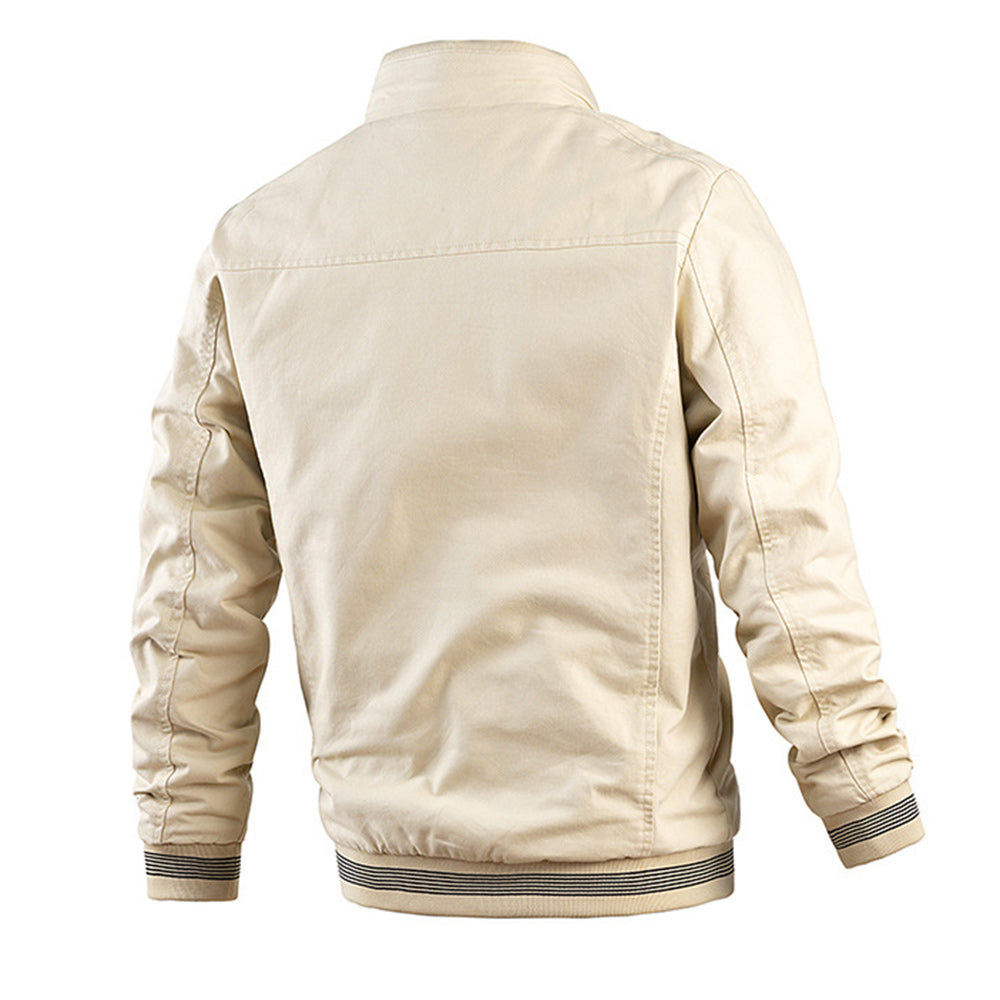 Men's Stand Collar Cotton Solid Color Zip Casual Jacket